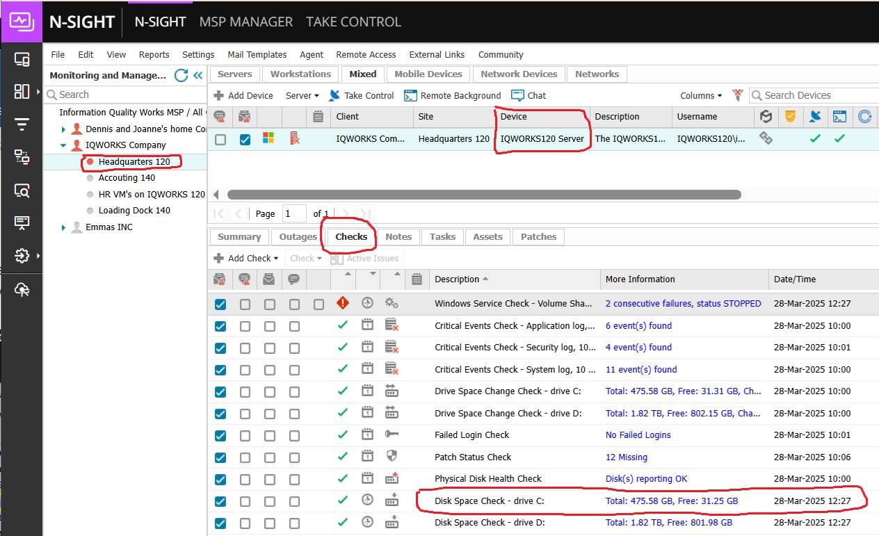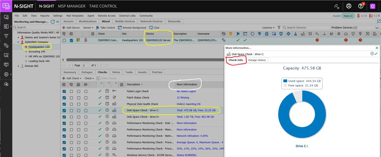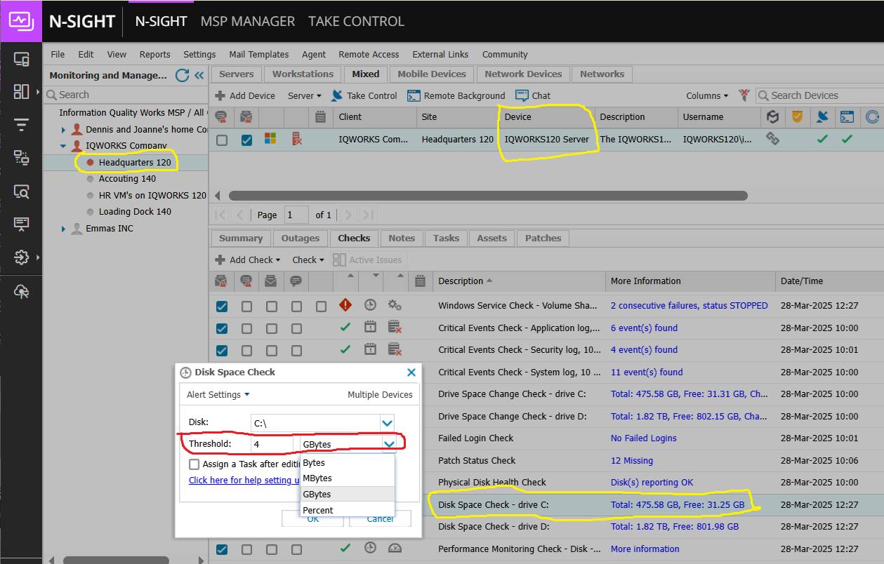 example, we have a 24/7 check called a “Disk Space Check”. We call
