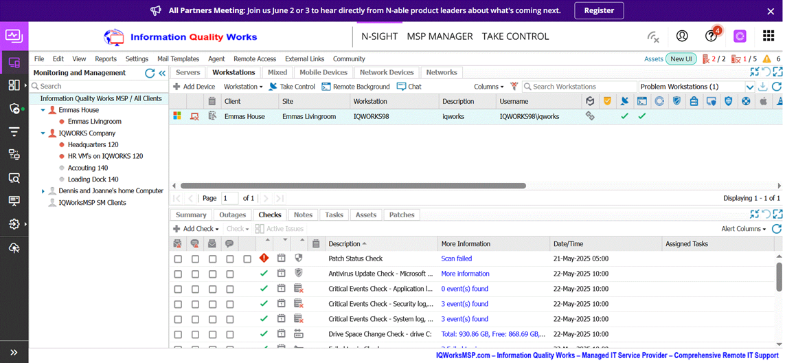 Emma’s south pane information under the “Workstations” and “Checks” tabs: