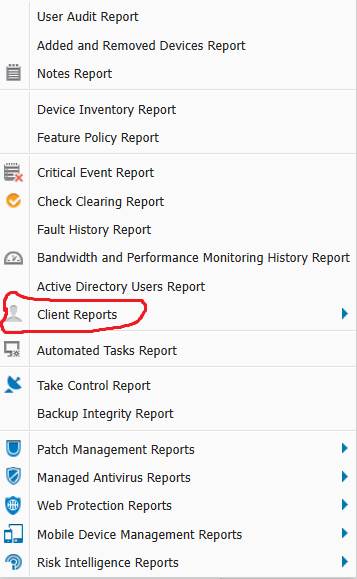 Client (SM) reports m: https://documentation.n-able.com/remote-management/userguide/Content/systems_reporting.htm |